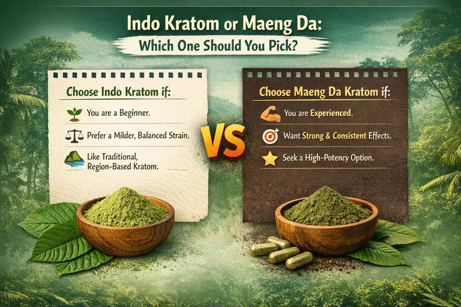 Who should choose what: Indo Kratom is better suited for beginners and cautious users, while Maeng Da is typically preferred by experienced users who want a premium, high-grade option