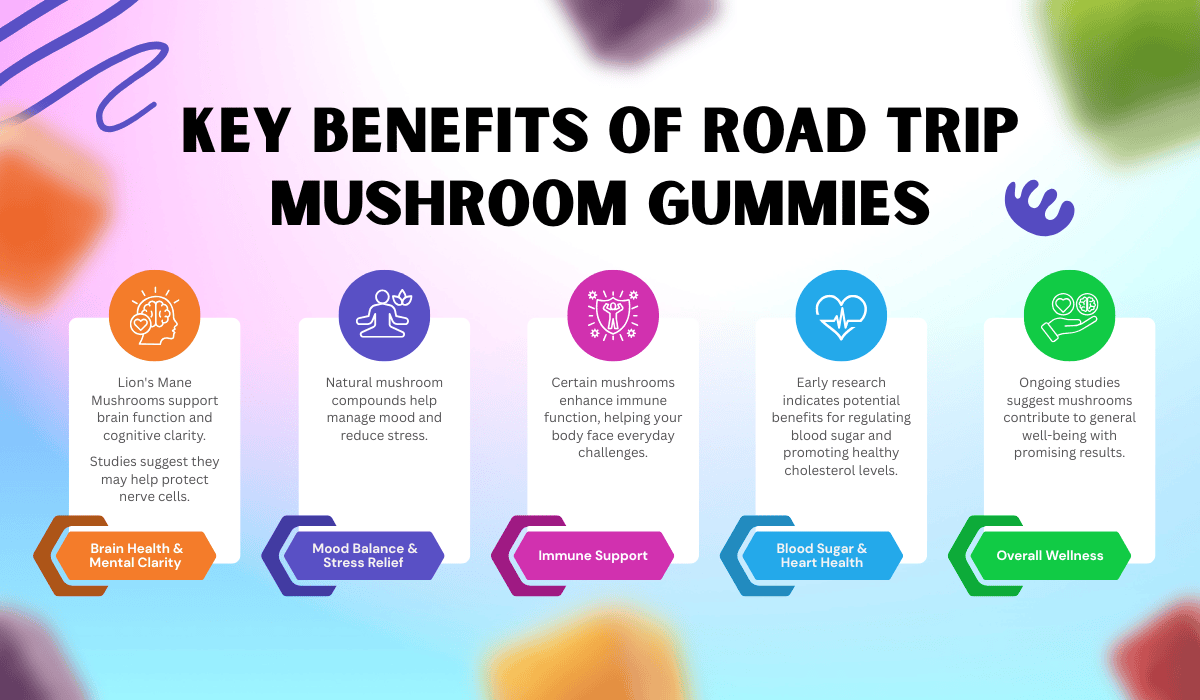 Road Trip Mushroom Gummies pack natural wellness benefits from their mushroom blend.