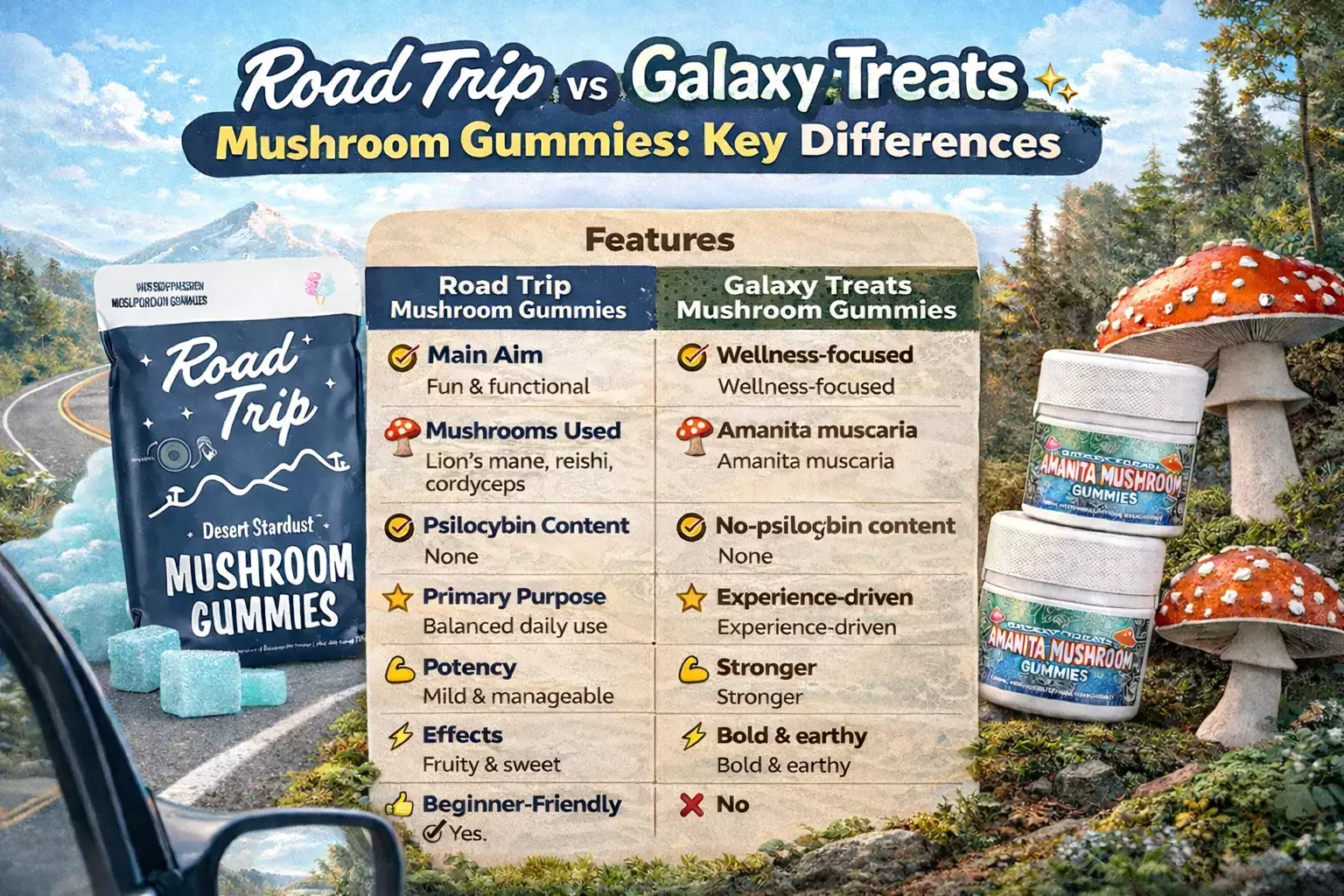 Road Trip Vs Galaxy Treats Mushroom Gummies: Key Differences